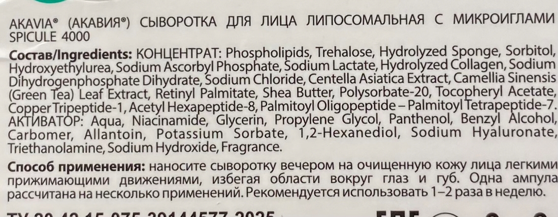 В общем, Spicule 4000 Akavia — достойный пример эффективной сыворотки со спикулами российского производства. Интересный формат, сильный состав, деликатное воздействие, заметный результат и бюджетней конкурентов.