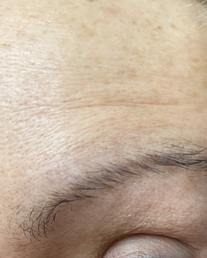 Сразу скажу, что какого-то разительного эффекта в отношени пор и тона кожи я не вижу, но там, я думаю, ретинол и кислоты уже сделали всеё на что способна домашняя уходовая косметика. А вот улучшение тонуса кожи и сглаживание морщин не заметить нельзя. Кто меня регулярно читает, уже знает, что у меня три «проблемных места»: глаза, заломы у губ от сна и глубокая морщинка над одной бровью (видимо, одним глазом я удивляюсь сильней😂 ). Вот последняя оказалась наиболее показательна спустя уже месяц использования.