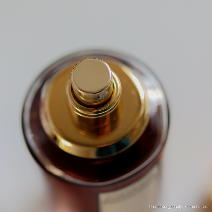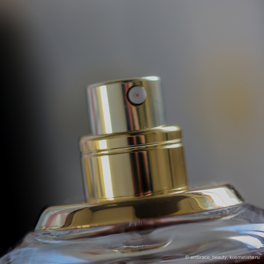 Распылитель под крышкой так же оформлен в золото и очень добротно, качественной возвышается над флаконом.