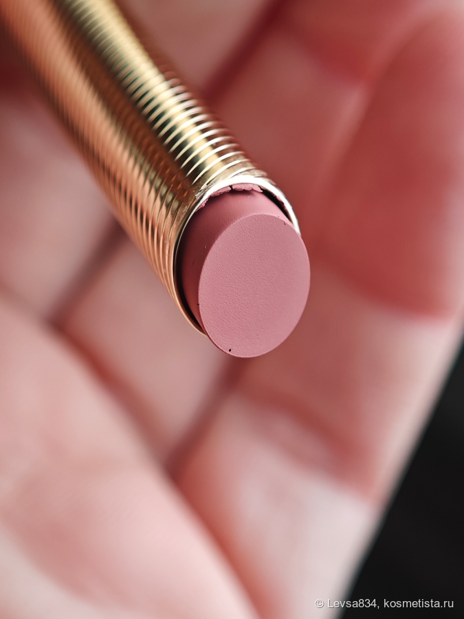 Стик небольшой в диаметре, срез у него ровный, округлый. При нанесении помады на губы чувствую, как стик немного шатается, ну ещё бы, он такой тонкий, так что не выкручиваю его слишком уж сильно.