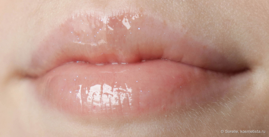 На губах лежит симпатично, за счет прилива крови губы становятся ярче. В белую полоску не скатывается, финиш придает стеклянно-глянцевый. Кровь приливает к губам неравномерно, на мой взгляд, из-за этого эффект не самый симпатичный.