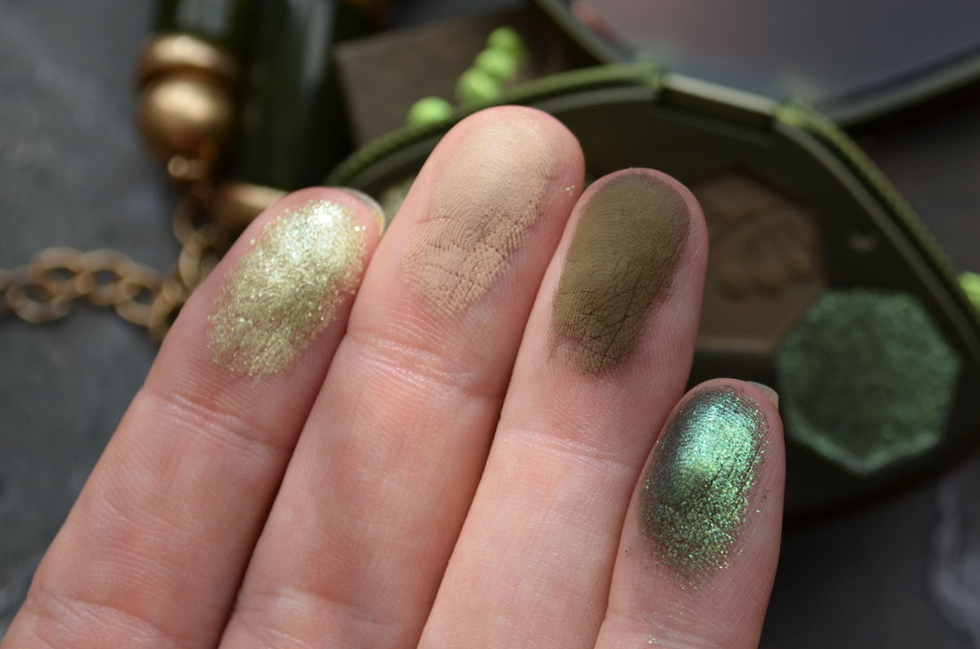 Темный матовый — тот ещё товарисч! Плешивит, ложится грязновато, тушуется неохотно и сереет на веках. Да. Хочешь зелёный — получаешь что-то болотно-серое, приходится его наслаивать и наслаивать, чтобы вытащить тот зелёный, который я вижу в рефиле. Я так думаю, что ему не нравится моя база под тени, поэтому вместо зелёного хаки у меня получается что-то другое.