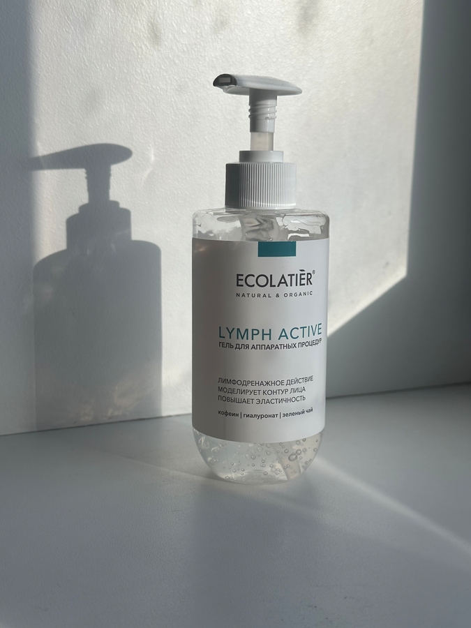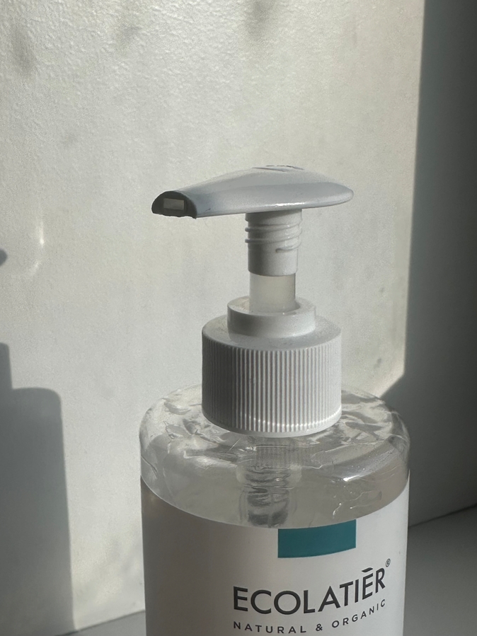 В моем случае в руки беру гель ECOLATIER Lymph active. Дозатор здесь идеальный — помпа, не нужно ничего трясти или лезть пальцами в банку. Отдушек и спирта нет, консервация нормальная.