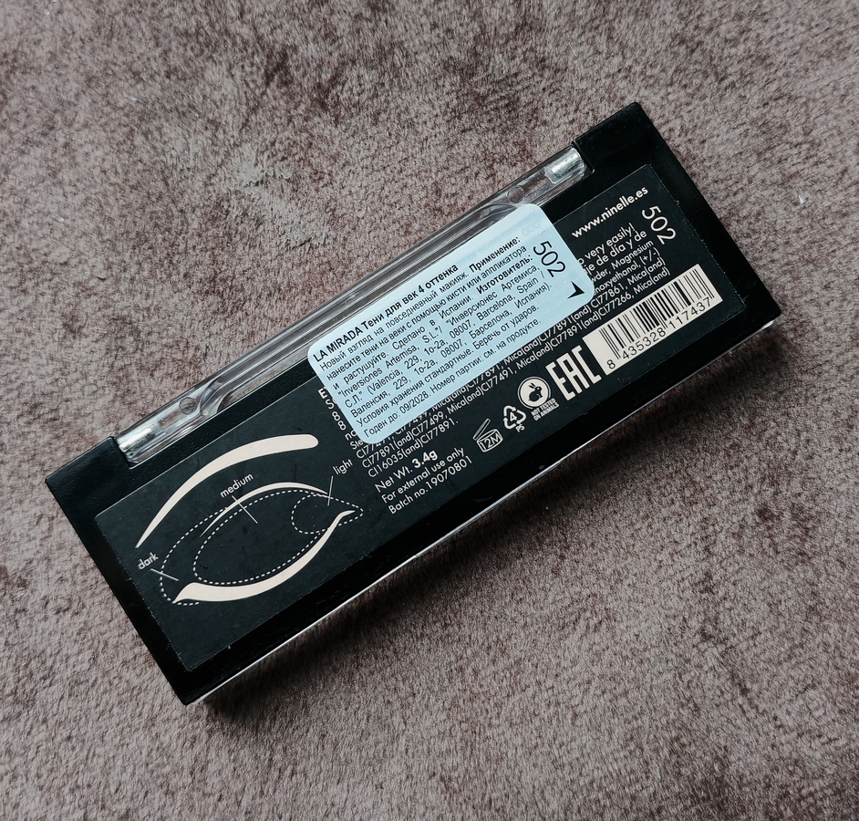 На дне палетки имеется информация о продукте.