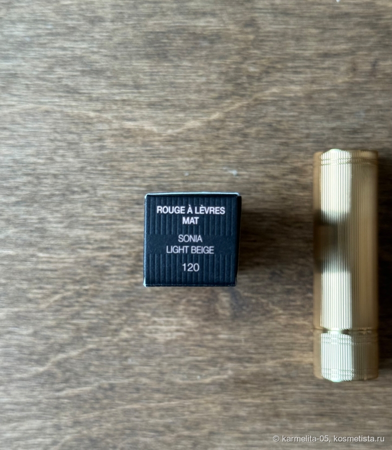 Тяжеленький золотой футляр, стик прочно сидит в патроне и выкручивается с мягким шелестом. Вес помады стандартный 3,5 г, каплевидный срез и гравировка марки.