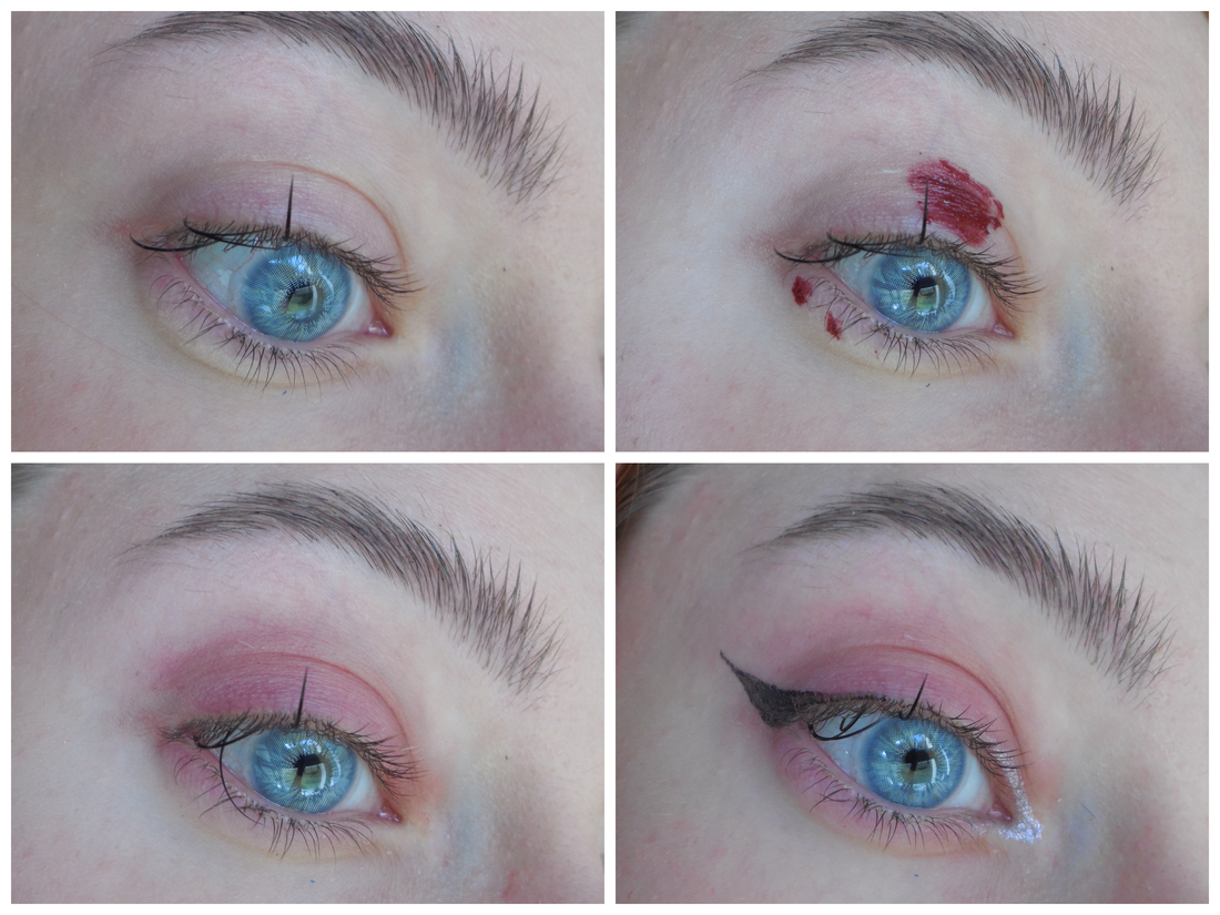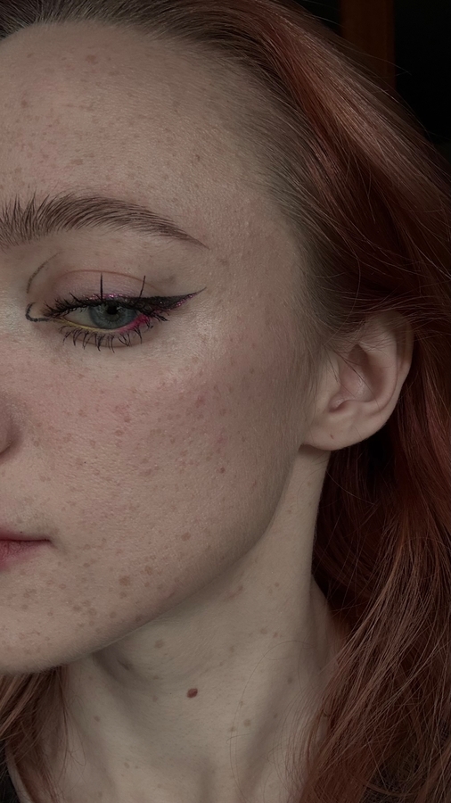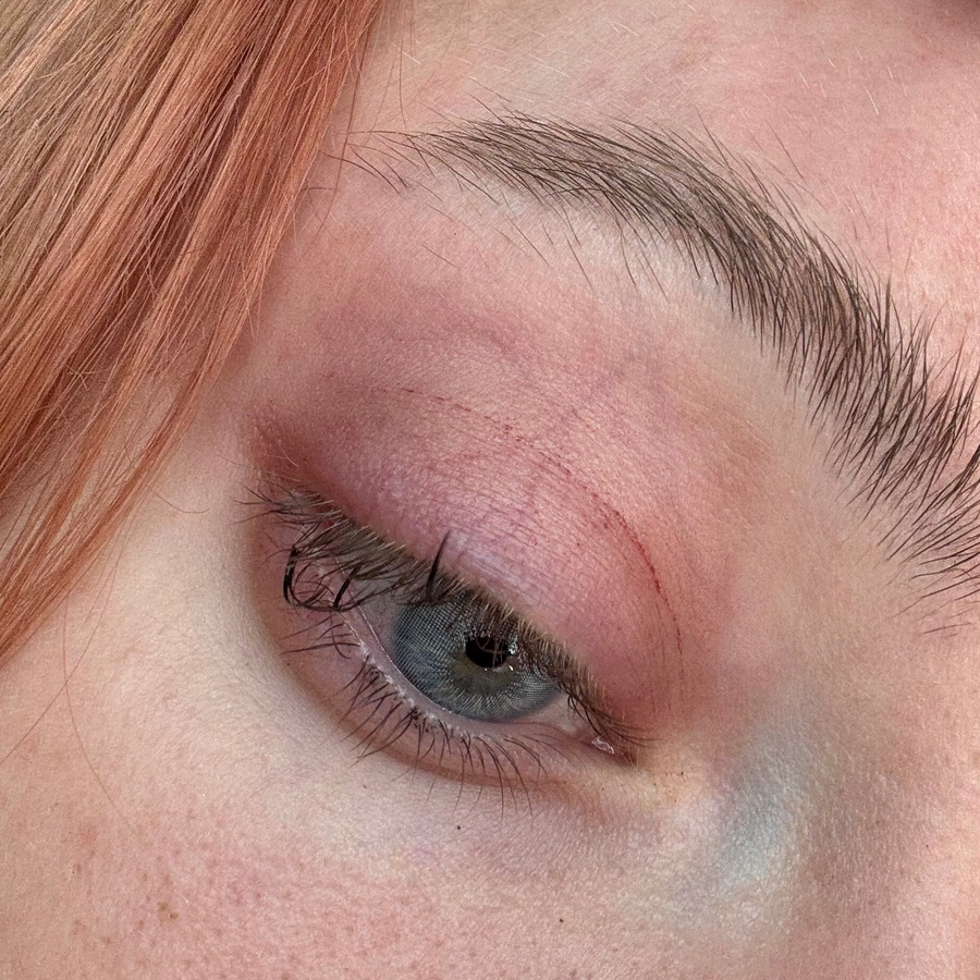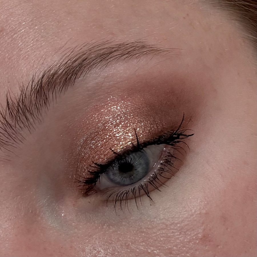 Использование на глазах самостоятельно и в качестве подложки. Вот здесь немного не без нюансов оказалось, к сожалению. У меня не проблемные веки и скатывается что-то крайне редко… Но это тот самый случай. Увы, без закрепления хотя бы просто пудрой это очень красиво, но абсолютно неносибельно. Два часа и картина такая.