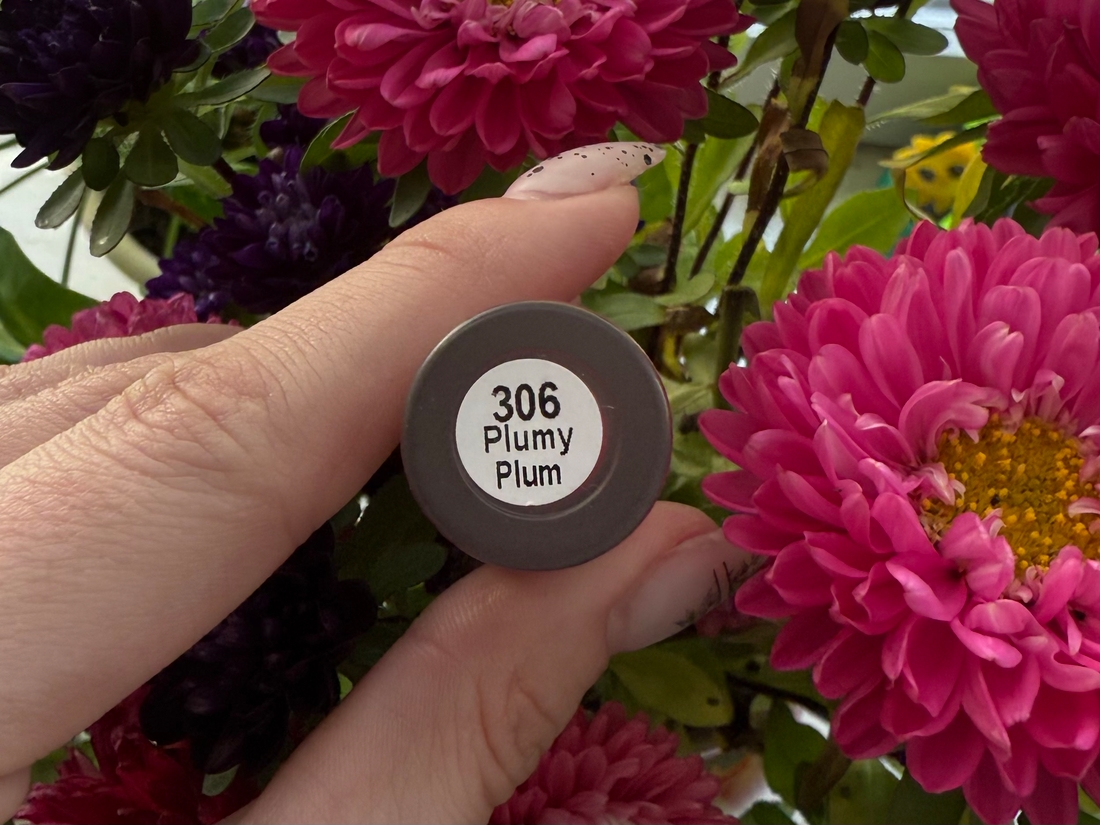 Я покупала данный продукт осенью и что-то меня прям накрыло хорошим таким осенним выбором, так что взяла красивый «гниловатый» приглушённо сливовый оттенок №306 plumy plum.