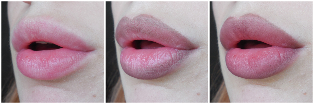 Использование на губах. Не спешила пробовать, потому что по опыту это обычно что-то весьма стягивающее и сушащее… Но как же я ошибалась. По текстуре чем-то мне напомнили Dear Dahlia. Матовая, но очень тонкая и комфортная текстура с полупрозрачным финишем.