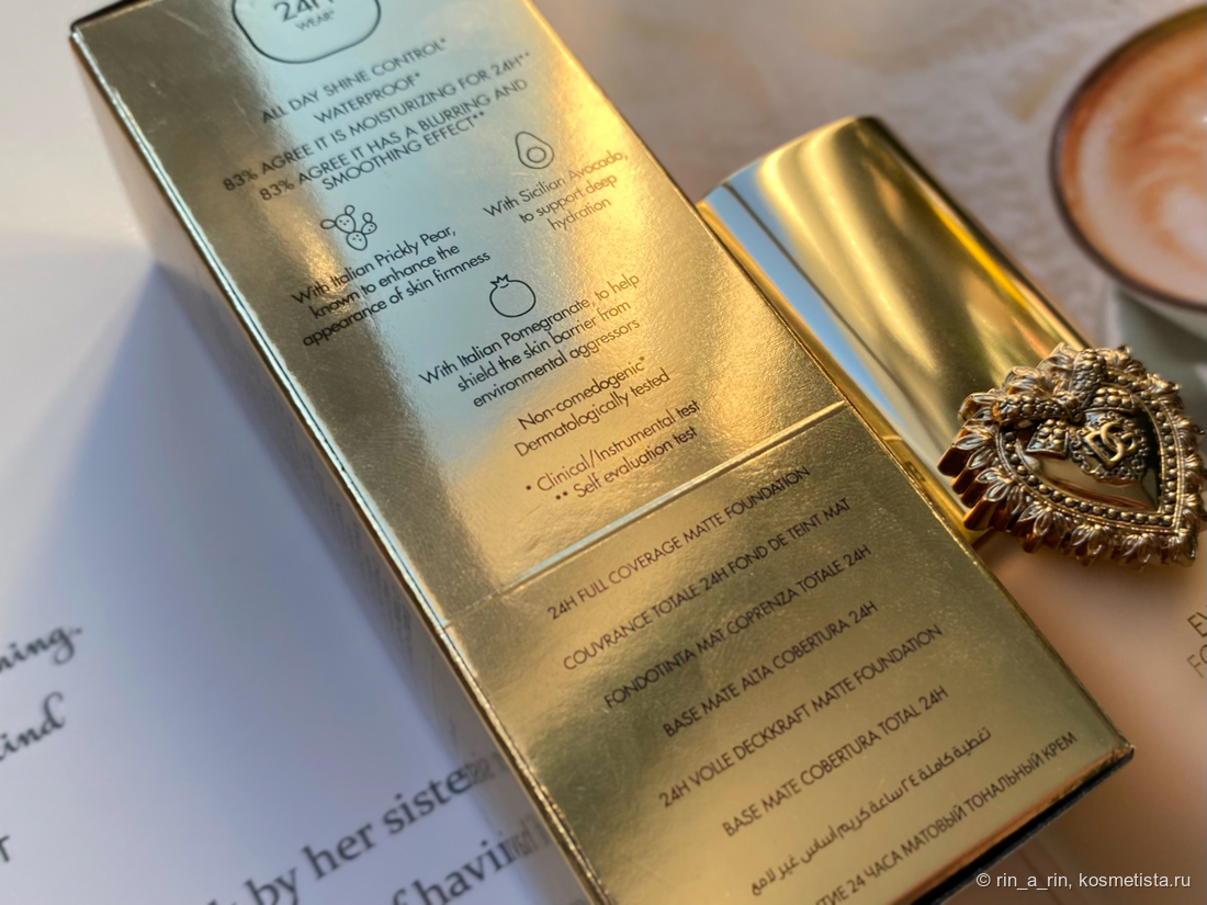 На картонной коробочке имеется русифицированная наклейка о средстве, его состав и еще некоторая полезная информация, которую прикреплю на фото ниже. Производитель обещает нам стойкое покрытие в течение 24 часов. Так же тональный крем содержит всякие полезные штуки, которые работают на благо кожи. Но я, если честно, как-то не особо верю в уход от декоративной косметики. Главное чтоб хуже коже не делала. А этот крем не делает.