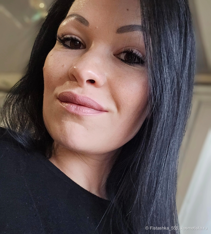 В жизни это очень универсальный, «живой» цвет, который не рыжит и не бледнит. Он отлично освежает лицо и выглядит очень естественно, особенно на контрасте с темными волосами. Стик имеет удобный каплевидный срез, который позволяет аккуратно прорисовать контур даже без карандаша.