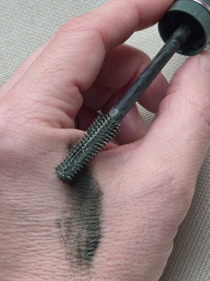 Про цвет. Без солнца тушь почти черная, этакий мягкий чёрный, для низко контрастной внешности — самое то. Но на солнце появится зелень: