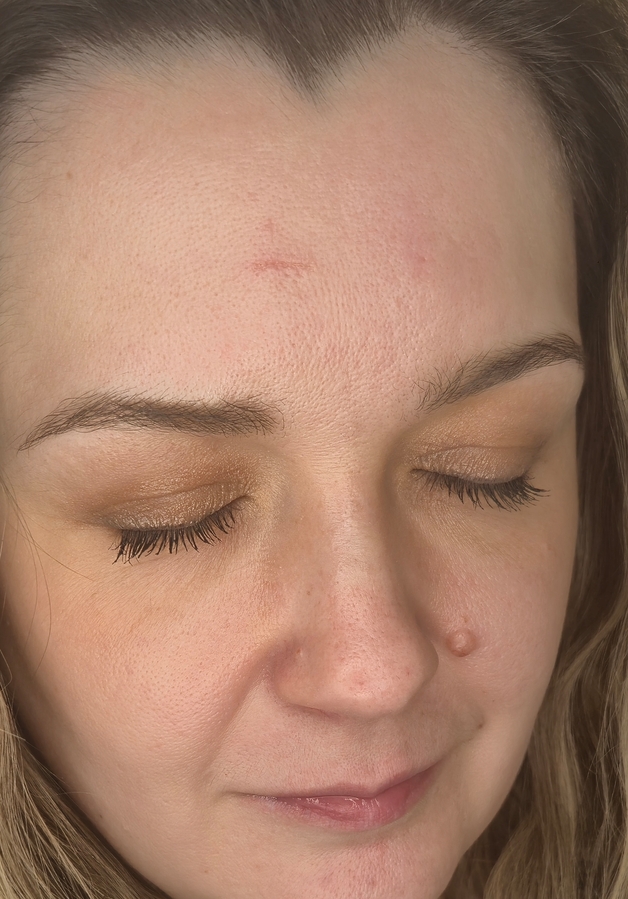 Хорошо, что до съемки я немного подралась с котом 😄, потому что сейчас на примере царапины на лбу я покажу кроющую способность тональника.