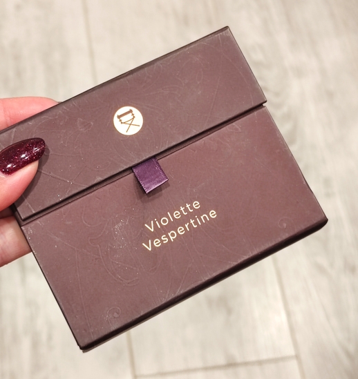 Сама палетка красивого тёмного черничного цвета, покрытие софт-тач.