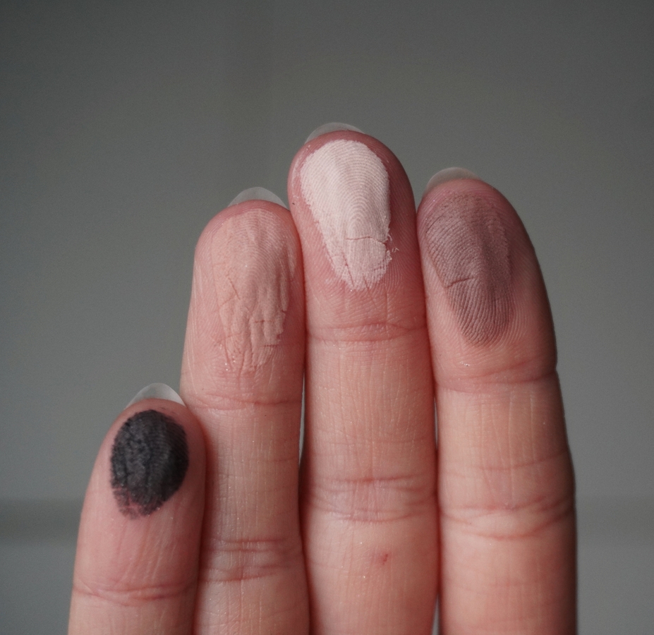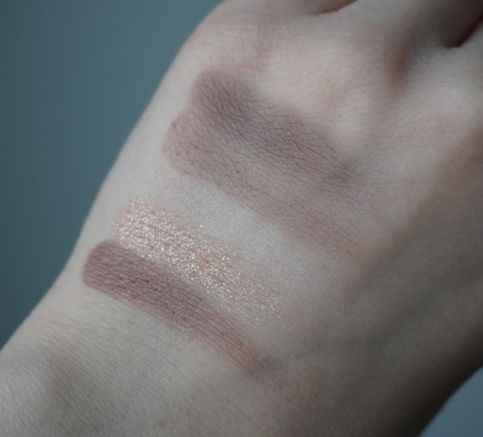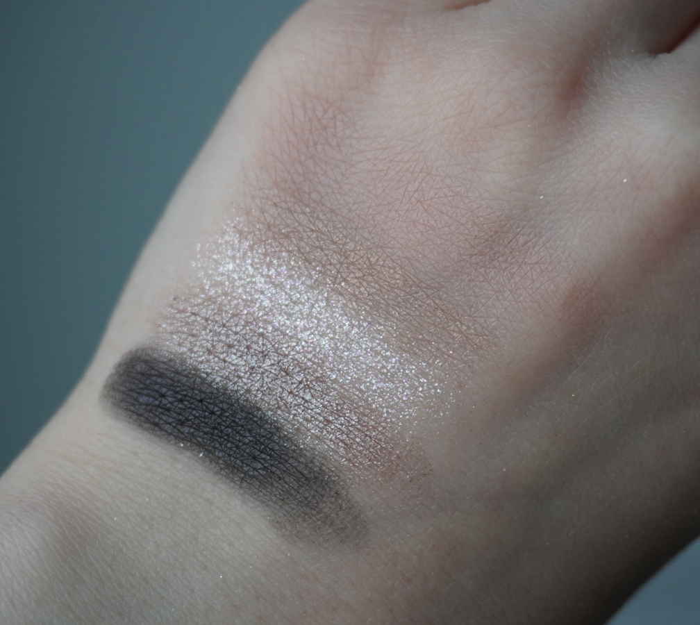 Сияшки здесь достаточно рыхлые, особенно самый светлый оттенок, поэтому лучше наносить их пальцем, чтоб не было хлопьев.