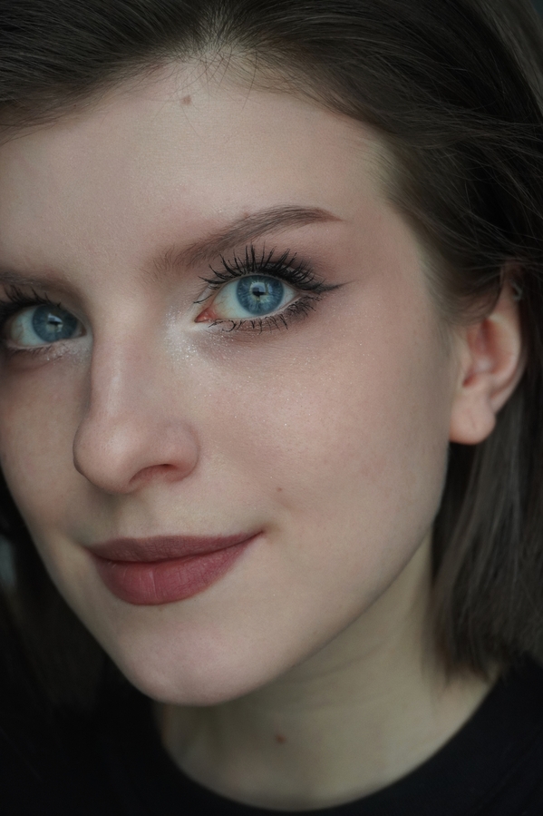 Единственное, наверное, что не особо понравилось, как смотрятся сияшки на скуле и в уголке века — уж больно рыхло.
