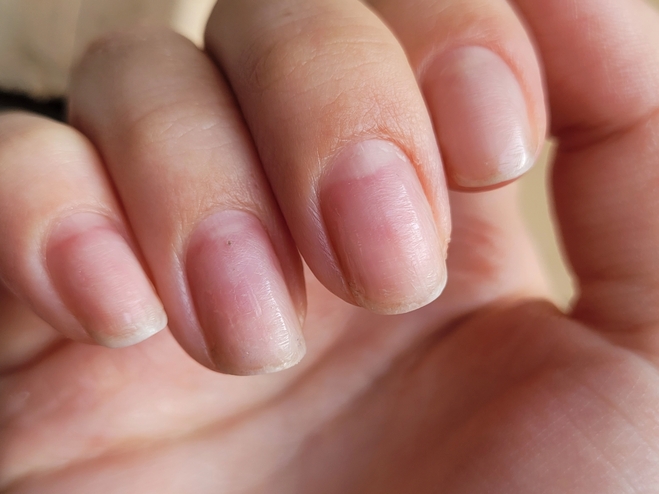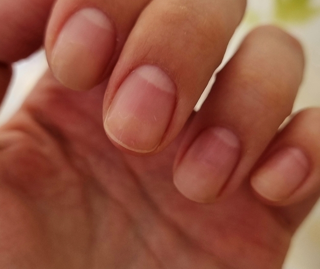 А я из тех, кто никогда не был на маникюре. У меня микрокутикула вплотную к ногтю, которую не видно, если не разглядывать ногти максимально близко. Я не трогаю ее ремуверами и не пытаюсь отрезать, не наношу под нее лак. Просто пилю ногти и валики. Это, конечно, не выглядит «правильно» с точки зрения современных техник маникюра, но у меня там такая тонкая кожица, что и без давления неприятно что-то делать. Когда-то давно я пыталась делать маникюр по всем правилам и получала замкнутый круг из более толстой и сухой кутикулы и птеригия. Хотя и масла были, и воск для ногтей брала.