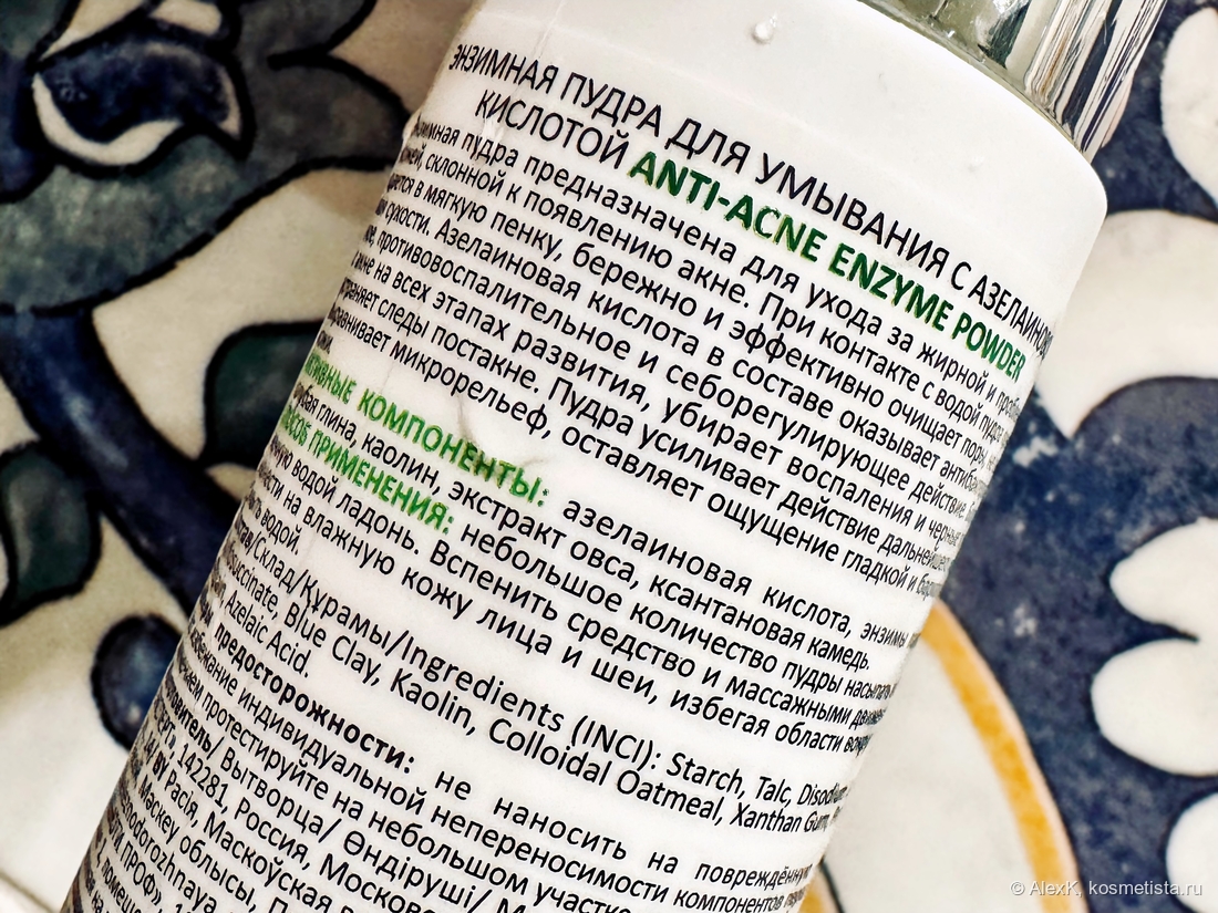 Почему так нежно? — удивилась я. А потом почитала состав и поняла, что это совсем другая энзимная пудра. И она сильно отличается от старушки Aravia Professional Stop-Acne Enzyme Powder.