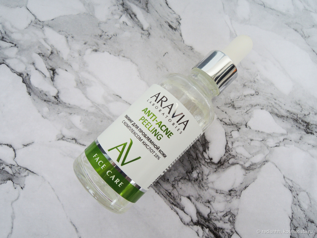 Начну с того, что я попробовала сразу несколько средств, с этой кислотой в составе, от бренда Aravia. Все они из линейки Anti-Acne, и конечно направлены на борьбу с несовершенствами кожи. Но, забегая вперёд, скажу: только от этого пилинга я вижу эффект на своей коже. А всё потому, что в составе Azelaic Acid или азелаиновая кислота здесь стоит на первых позициях, а значит и её концентрация будет выше.