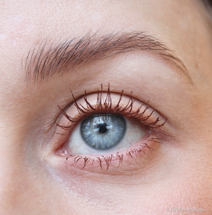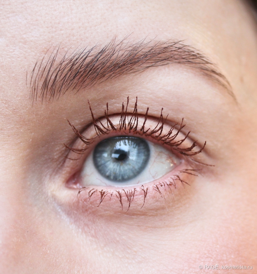 Также, я вижу подкручивание, причём, заметное. Реснички смотрят вверх, а не куда попало, и для меня это куда более важно, чем отсутствие склеивания и комочков (и то, и другое в данном случае присутствует):