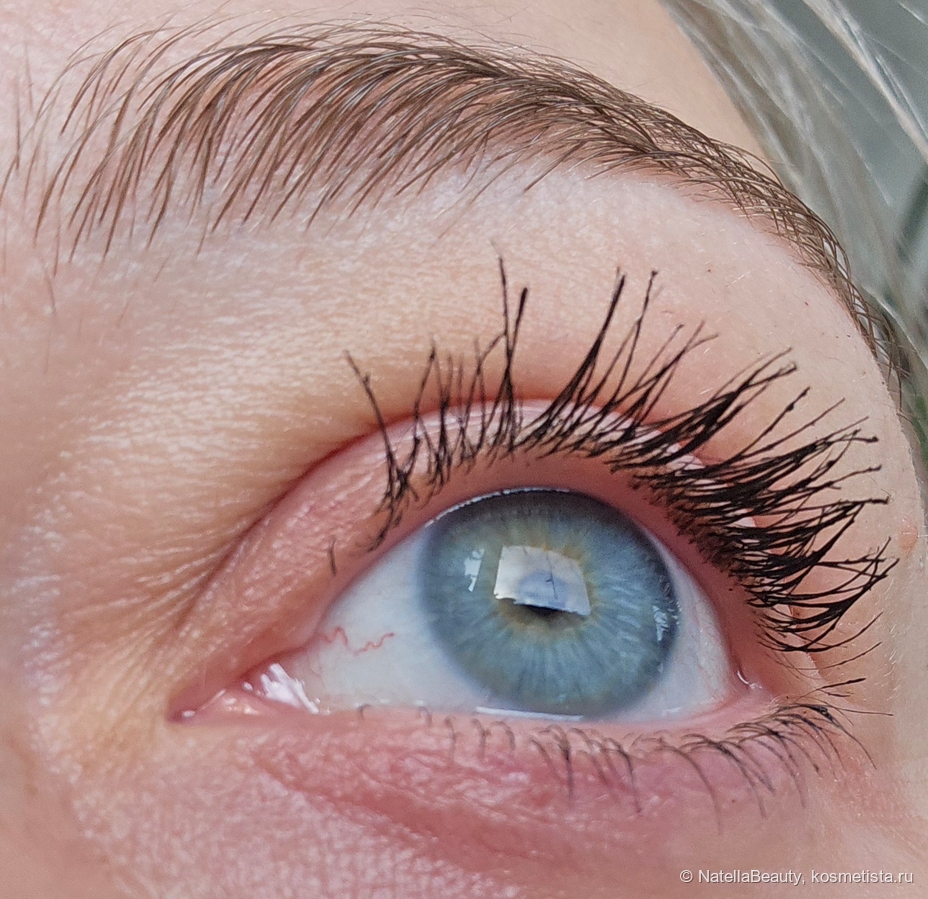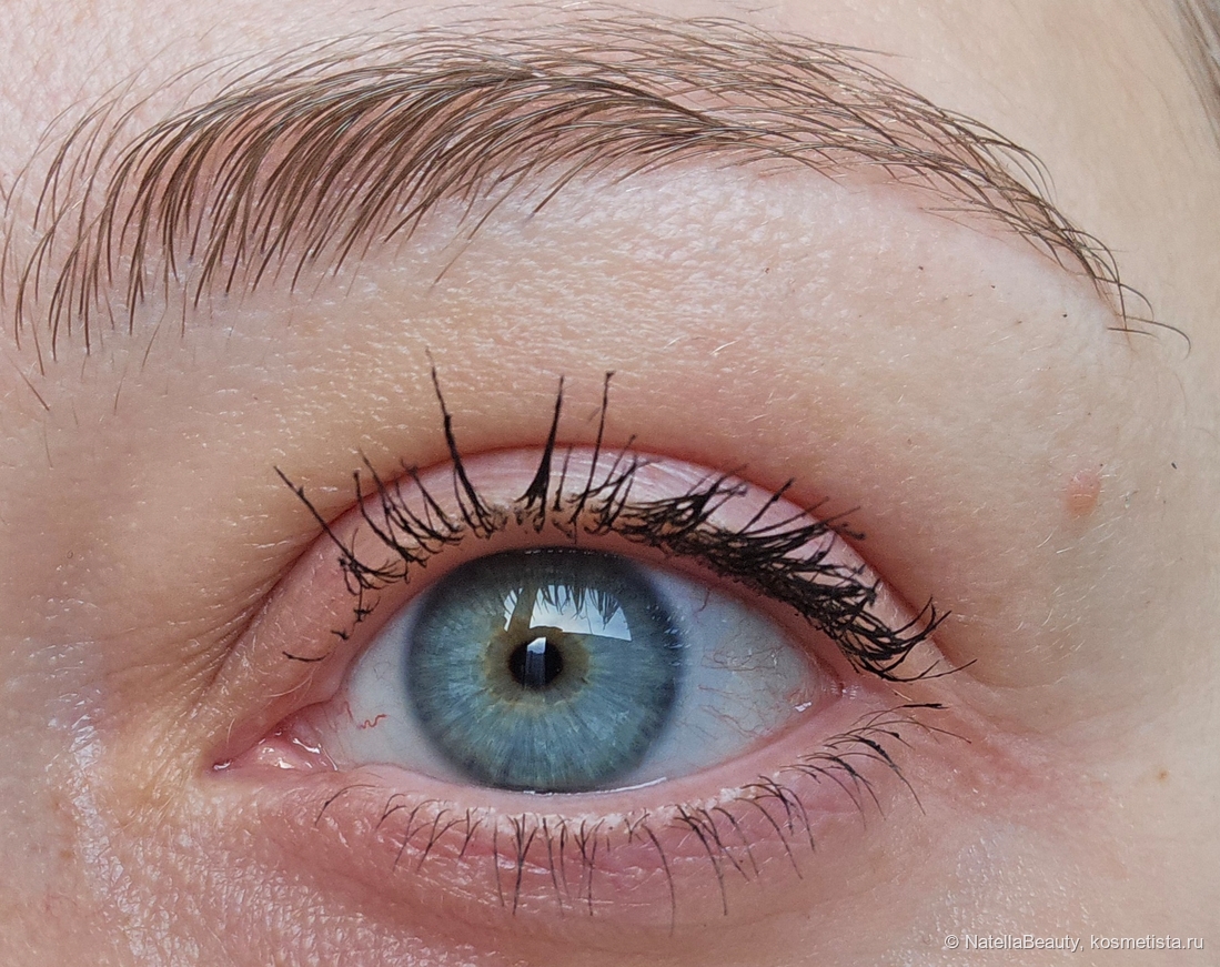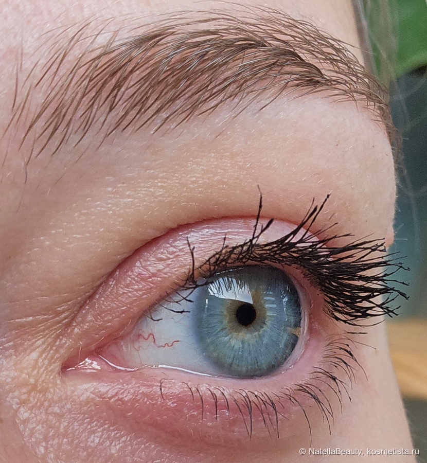 Щеточка удобная, ей легко и просто наносить продукт. Текстура тоже удачная. А вот эффект на моих ресницах выглядит неудачно. Не такого я ожидала...