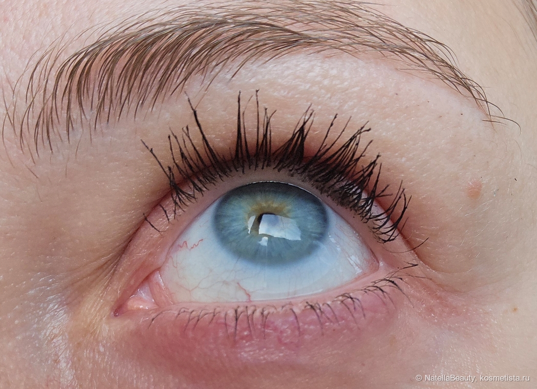 Тушь хорошо прокрашивает, но плохо разделяет. Не создаёт объеса и длины. Ресницы выглядят как обломанный забор.