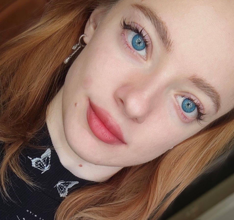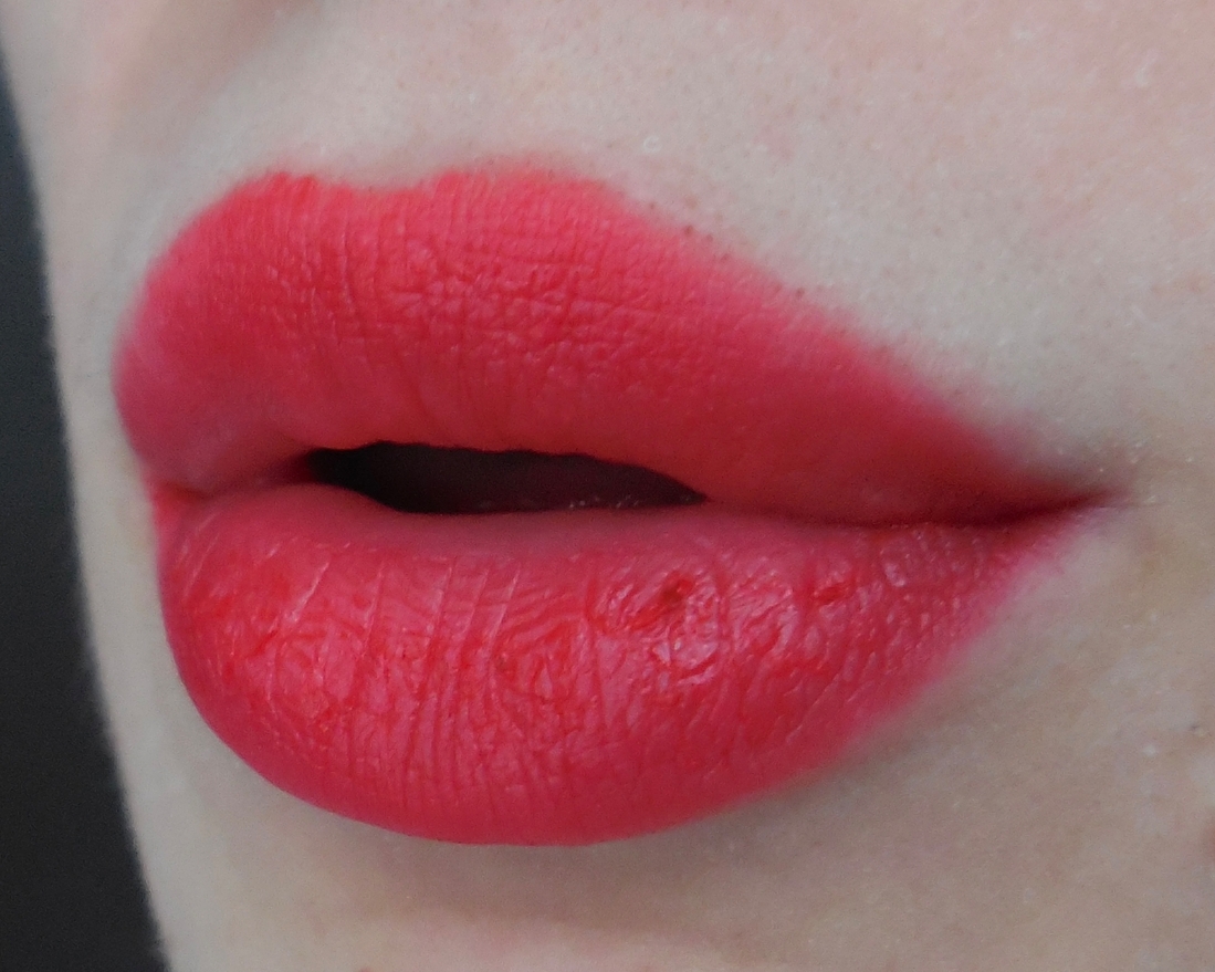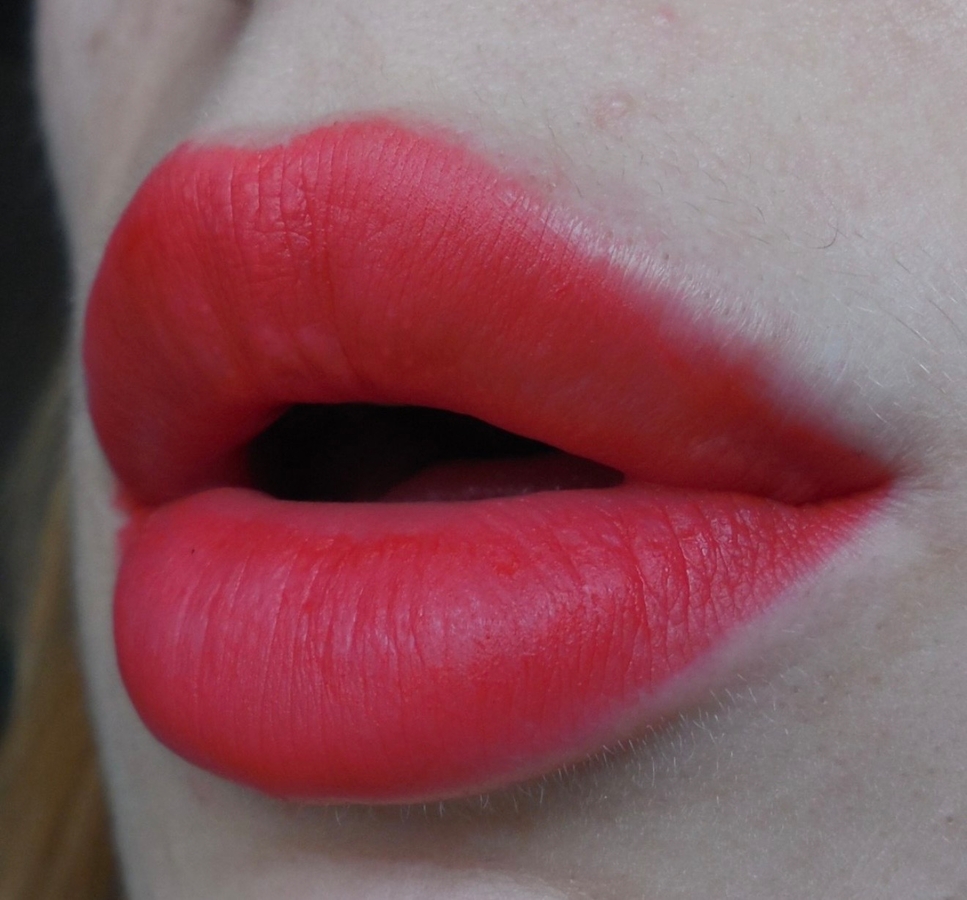 А ещё она абсолютно невесомая и совсем не ощущается на губах, не сушит их и не стягивает. Если сомкнуть и потереть губы чувствуется скольжение. Также отмечу, что после неё губы не сухие, нет непреодолимого желания как можно скорее их увлажнить, а ведь это не редкость для матовых помад.