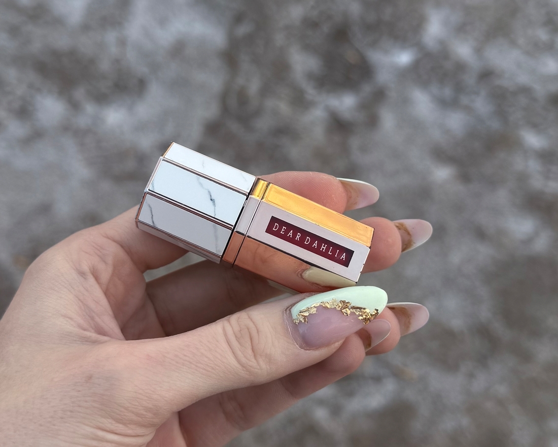 Это была моя давняя «хотелка» и вот наконец-то я добралась до бренда Dear Dahlia. Начать знакомство решила с муссовой помады для губ. Как можно понять по заголовку и количеству помад на фото, знакомство получилось крайне удачным.