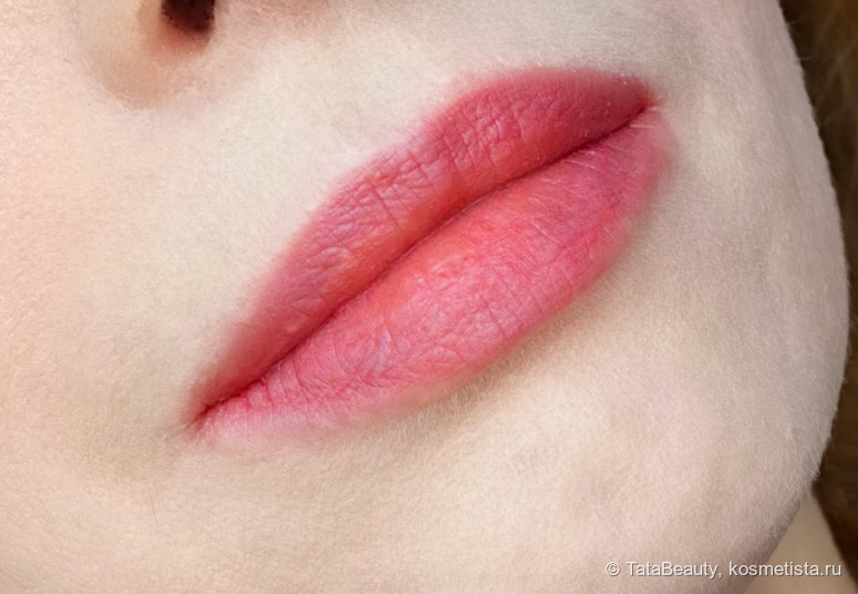 Стойкость средняя. Выдержит перекус и чашку кофе, а вот после полноценного обеда нужно немного поправить. Так как у меня нейтральный оттенок, который схож с оттенком моих губ, то «уходит» суфле аккуратно. Удаляется любым средством для демакияжа.