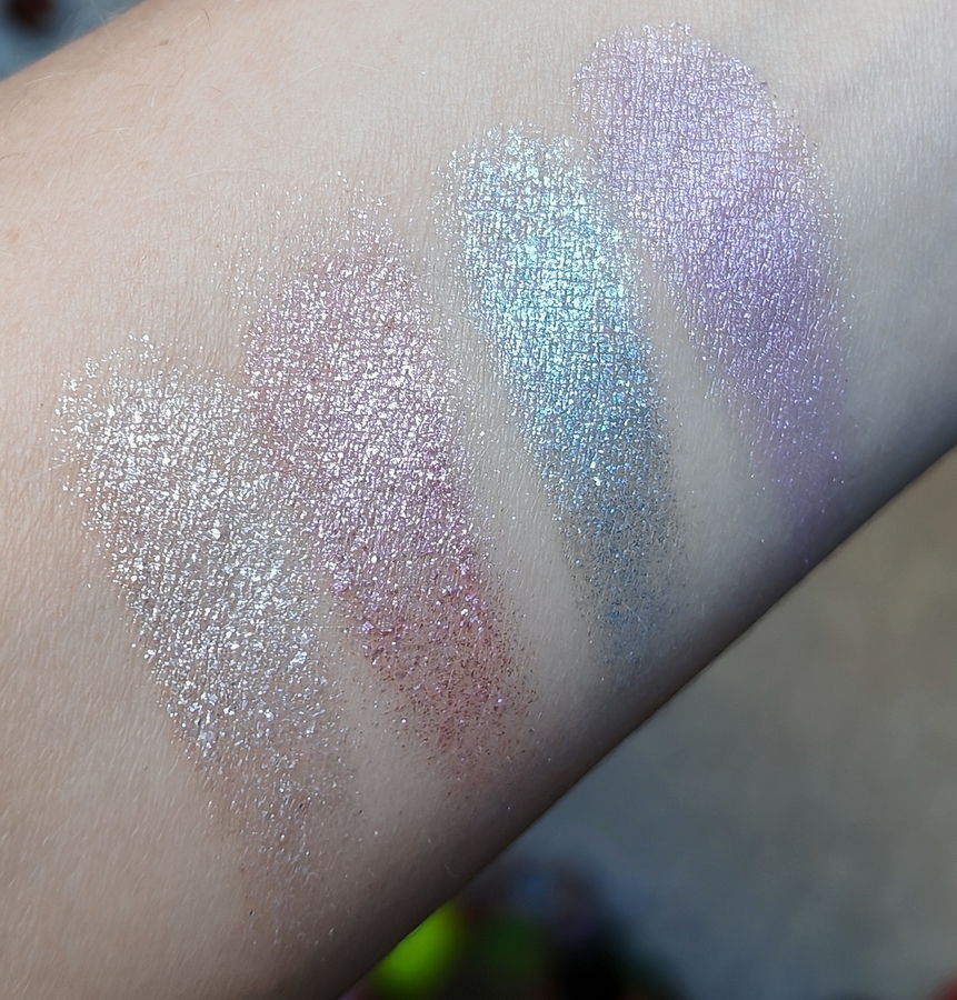Сияшки и сатин хороши, с ними легко работать. Но осыпаются при нанесении и в конце дня есть небольшие осыпания. Сияют красиво. Сияшки могут скатываться, сатин не скатывается.
