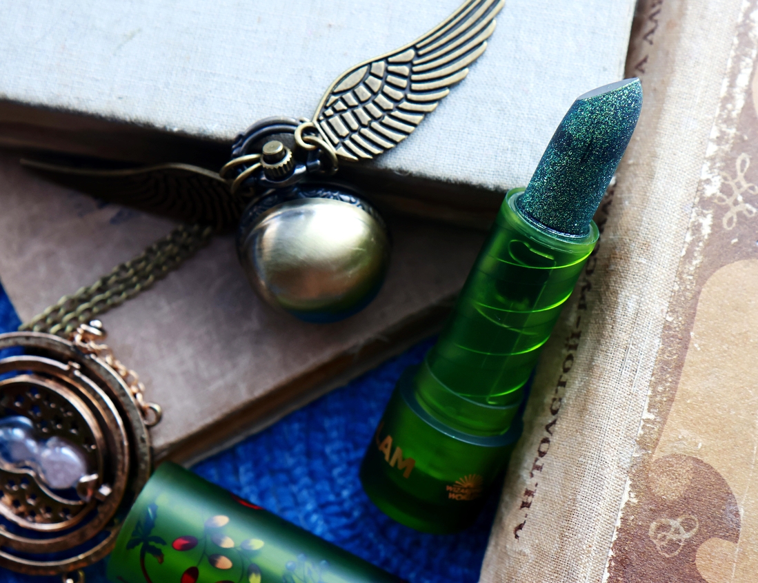 Sheglam Harry Potter Gifted Herbologist Glitter Lipstick (пост) — средство, которое я ждала около месяца, а то и больше. Выглядит очень здорово, но на деле не дает никакого увлажнения. Не уход и не декоративка. Стик вываливается. Стоит, изредка использую дома, но вообще это выкинутые на ветер деньги. Даже если бы внутри был самый обычный бальзам, было бы не так обидно.
