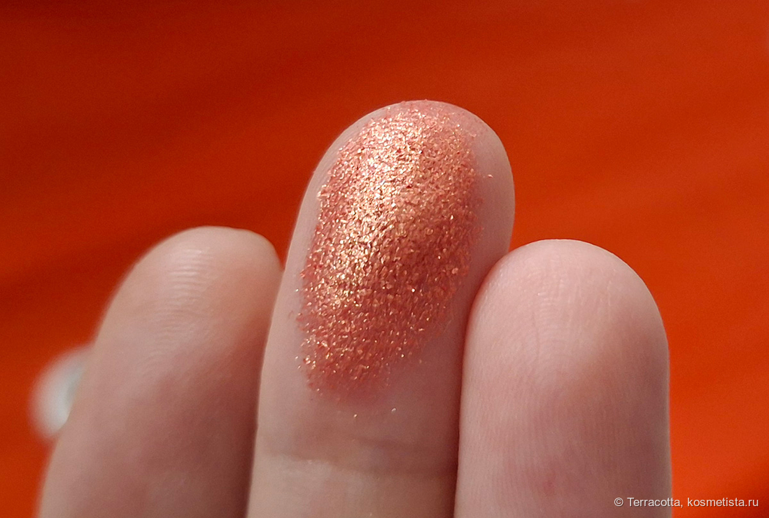 Наощупь они очень приятные, мягкие. База ярко-оранжевая с металлическим финишем. Я также вижу золотистые блестки. Красота неимоверная!