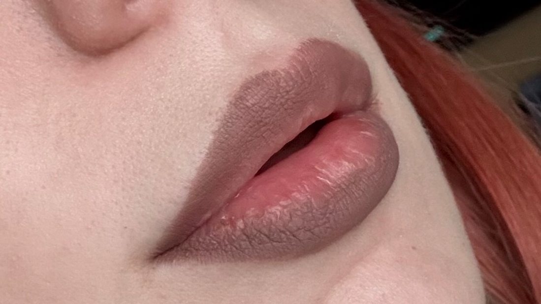 Из нюансов хочу отметить, что оттенок весьма требователен в плане исходного состояния губ. На сухость, трещинки и всё такое он наносится не всегда однородно, местами продукт скапливается и лежит плотнее. Если сомкнуть-разомкнуть губы пару раз становится получше, но всё равно нужно понимать специфику таких оттенков. Хотя на фото и в макро по классике всё выглядит в разы хуже, чем есть в жизни.