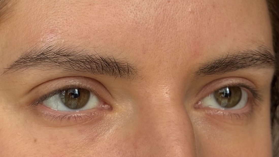 Щеточка — тонкая, изогнутая, очень удобная: такой сложно ткнуть себе в глаз или испачкать веки.