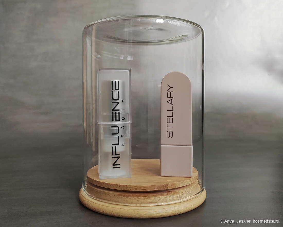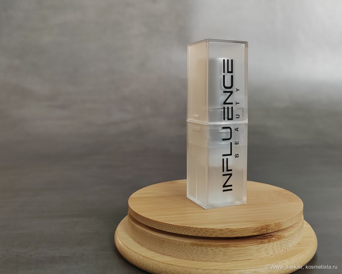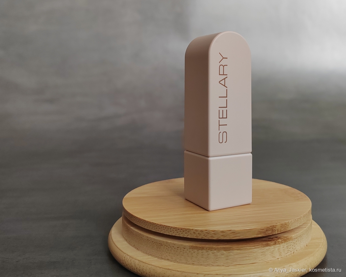 Трендсеттер это тоже часть постоянной линейки помад, мой экземпляр в новом дизайне и улучшенной формуле. Оттенков у Стеллари на два больше, и есть варианты с шиммерным финишем. Упаковка из бежевого матового пластика, из элементов дизайна есть название бренда на одной из граней. В роли защиты от вскрытия также выступает наклейка с составом, а на донышке есть стикер в цвет помады с номером и названием оттенка. Футляр выглядит и ощущается прочным, но стик заедает при выкручивании — похоже, мне попался механизм с браком. Крышка держится на упорах, в самопроизвольном раскрывании замечена не была. Объем помады 3.8 г, сделана в Подольске (на производстве Гамма Косметик, как и Инфлюэнс), cruelty-free, срок хранения после вскрытия год.