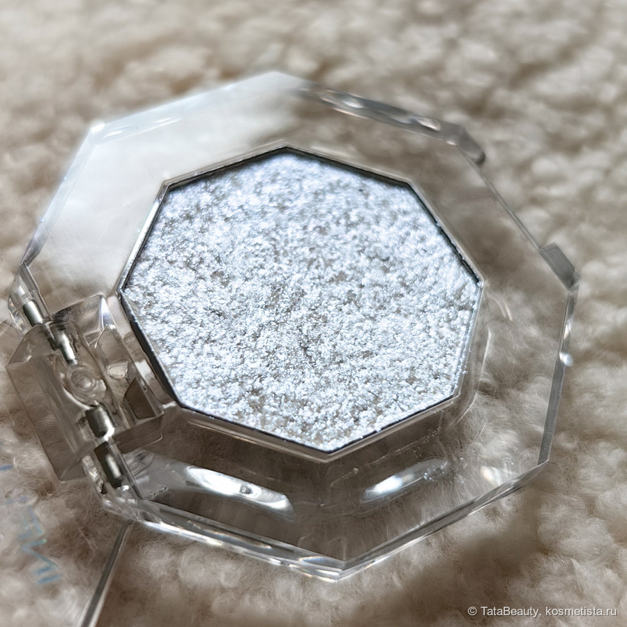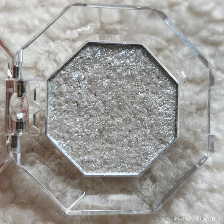 Тени — однушки упакованы в футляр в форме восьмиугольника. Футлял прозрачный. На крышке голографиком нанесено название бренда и продукта. Выглядит скромно, но сделано хорошо.