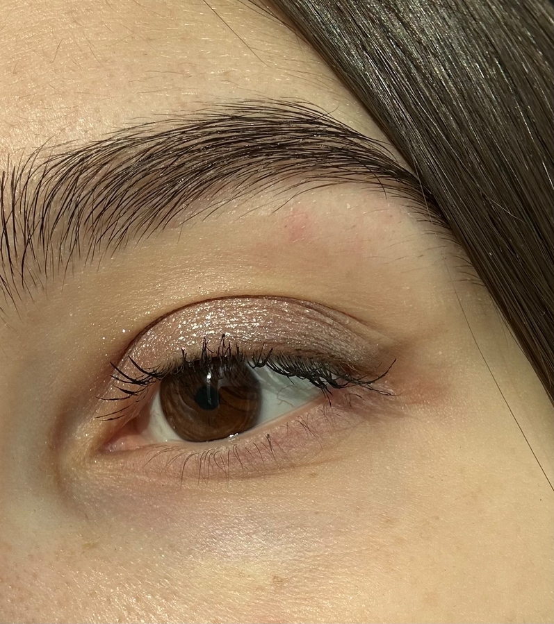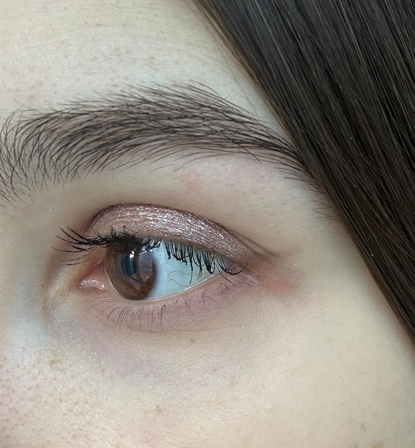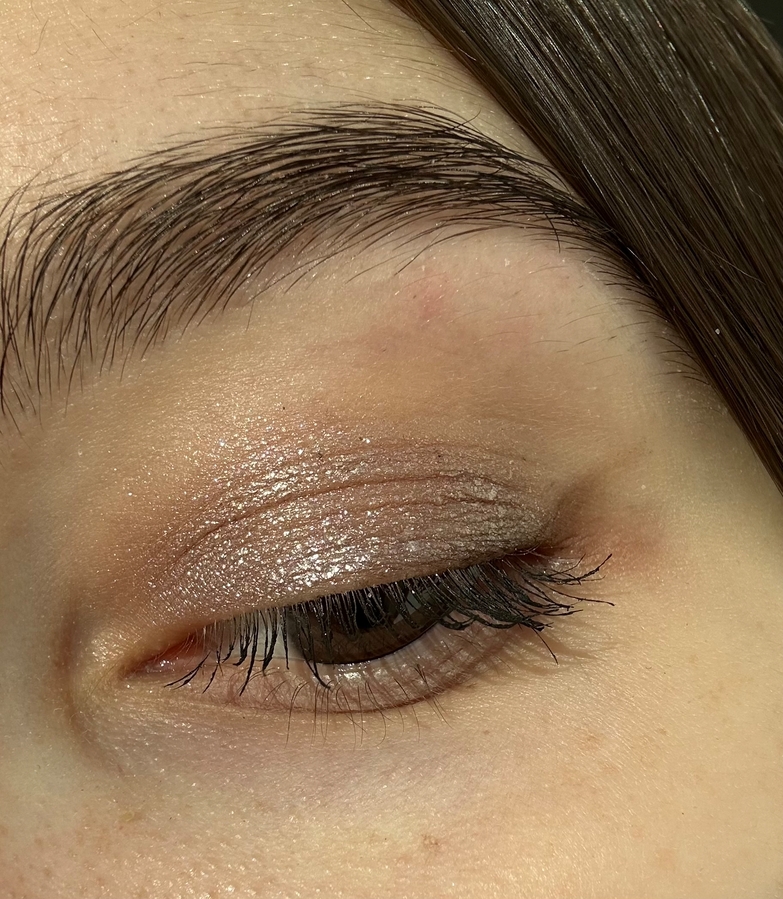 Оттенок 08 — соответствует своему названию. Холодно-нейтральный коричневый, с россыпью серебристых блесточек. Подходящий мне на каждый день цвет. Был бы он на полтона темнее, в активное использование уже не пошел бы. Можно наносить поверх других теней — например, матовых сухих, так и кремовых.