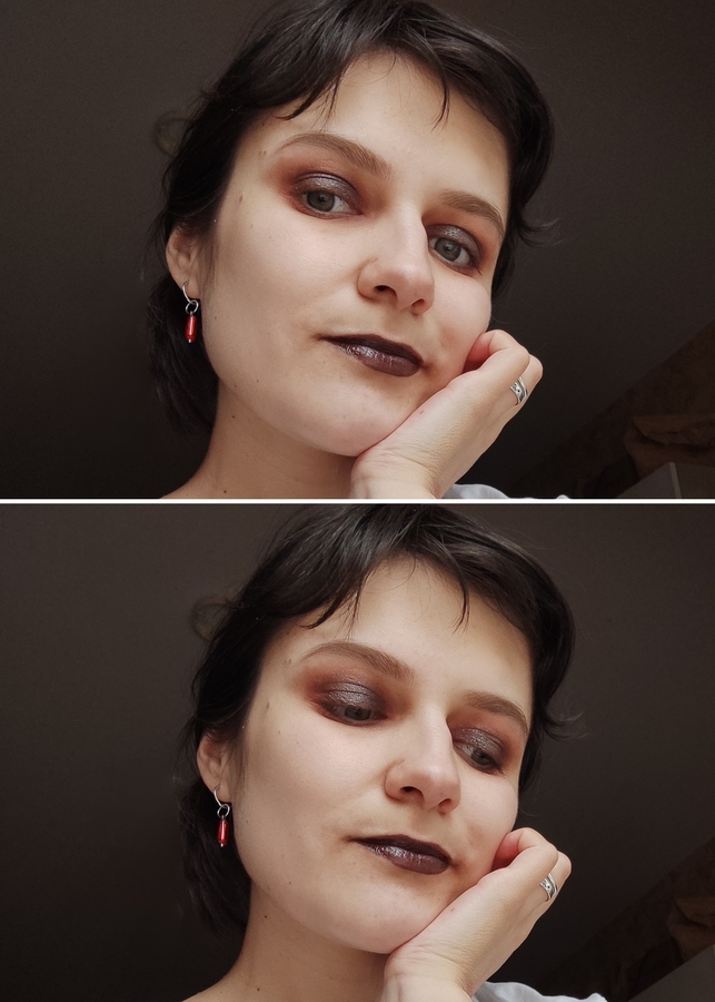 В целом, получилось похоже на то, что я хотела. Но покрытие, которое выходит при смешивании разных помад, мне нравится больше, как у красного бальзама, например. Тени все-таки не лучший наполнитель для помады, но есть у меня ещё пару идей, которые хотелось бы намешать. Но это в другой раз.