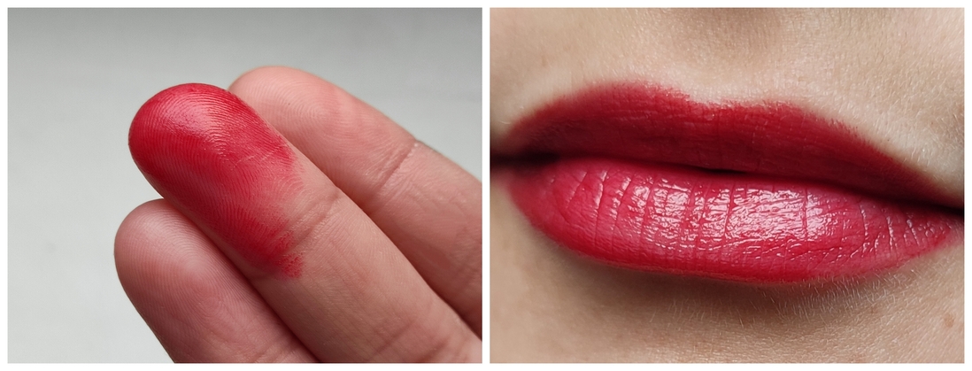 Ну и покажу, как выглядит покрытие, если смешивать несколько помад. Тут не подошедшая мне очень розовая помада, темно-красная помада и чуть-чуть бальзама.