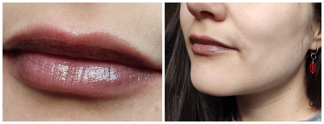 А вот такое покрытие получается при смешивании бальзама с жидкой матовой помадой: