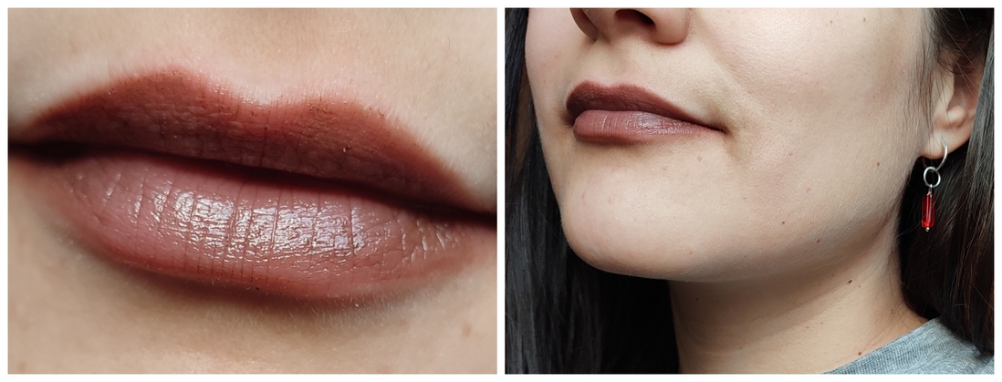 Карандаш меня немного подвел, не ожидала от него такой сухости, но мне понравилось, как помада смотрится в жизни. Да, немного западает в складки при сильном наслоении, не идеально, но видно это только на довольно близком расстоянии.