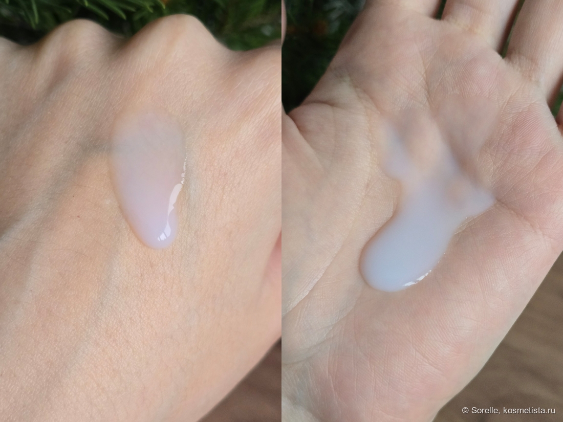 Запах очень легкий, я долго принюхивалась, но описать его так и не смогла, слишком уж он слабый. Текстура молочковая, немного гуще воды. Каплю не держит, но растекается неторопливо)