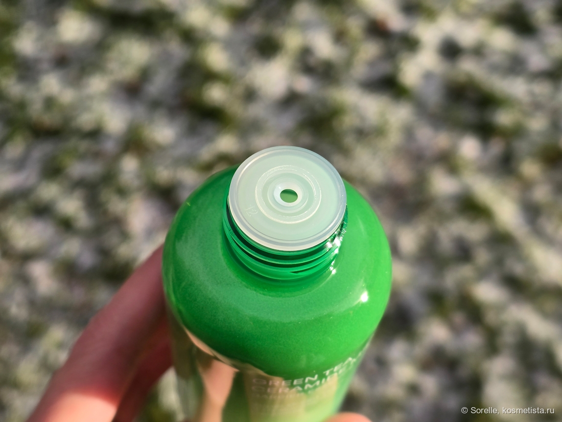 Бутылочка из зеленого полупрозрачного пластика. Надписи не затираются, расход виден — отлично!