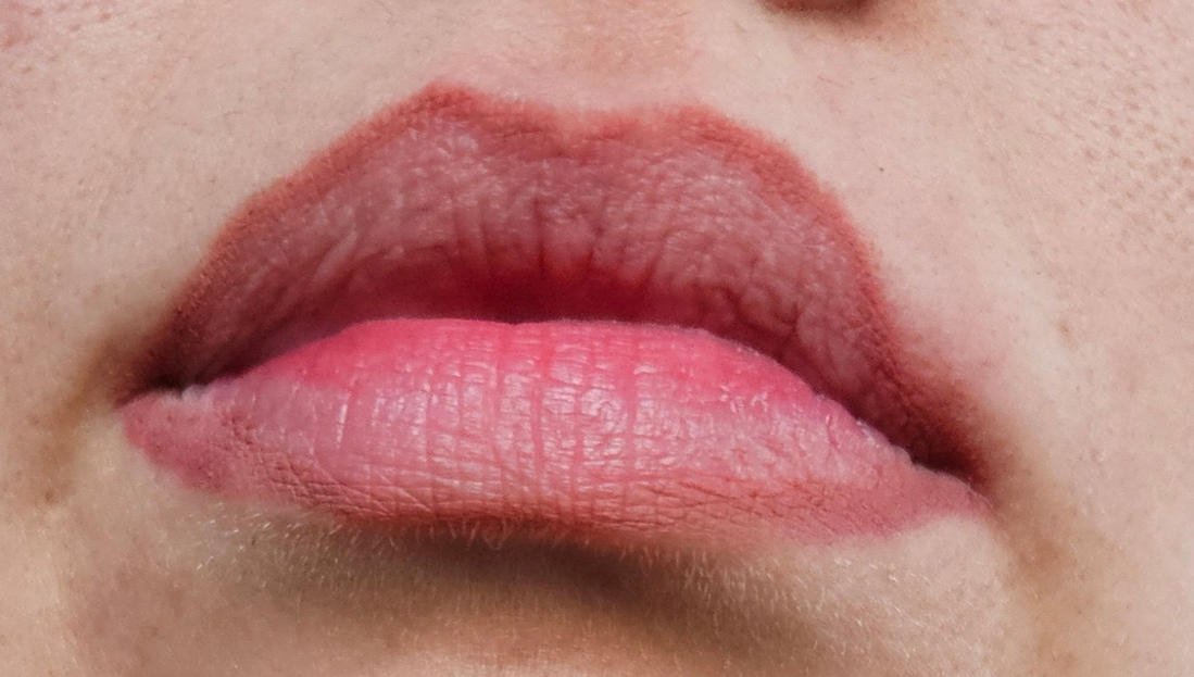 У него цвет теплее чем у карандаша, с розовым подтоном, и на губах он даёт натуральную «свежесть», не выглядит искусственно. В сочетании с нюдовым карандашом получается очень живой, но ненавязчивый оттенок.