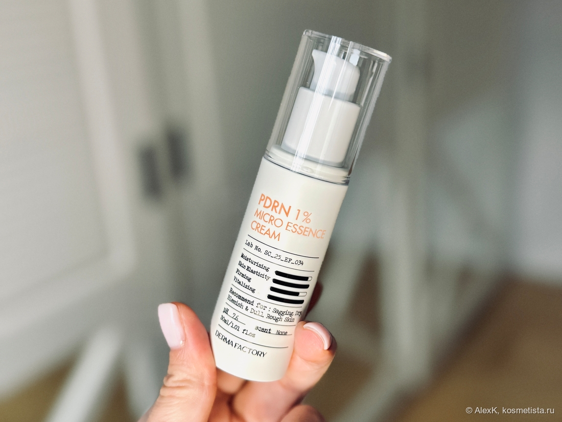 - PDRN 1% — главный герой. Это PDRN лосося, микронизированный и встроенный в микроэмульсию для лучшего проникновения.