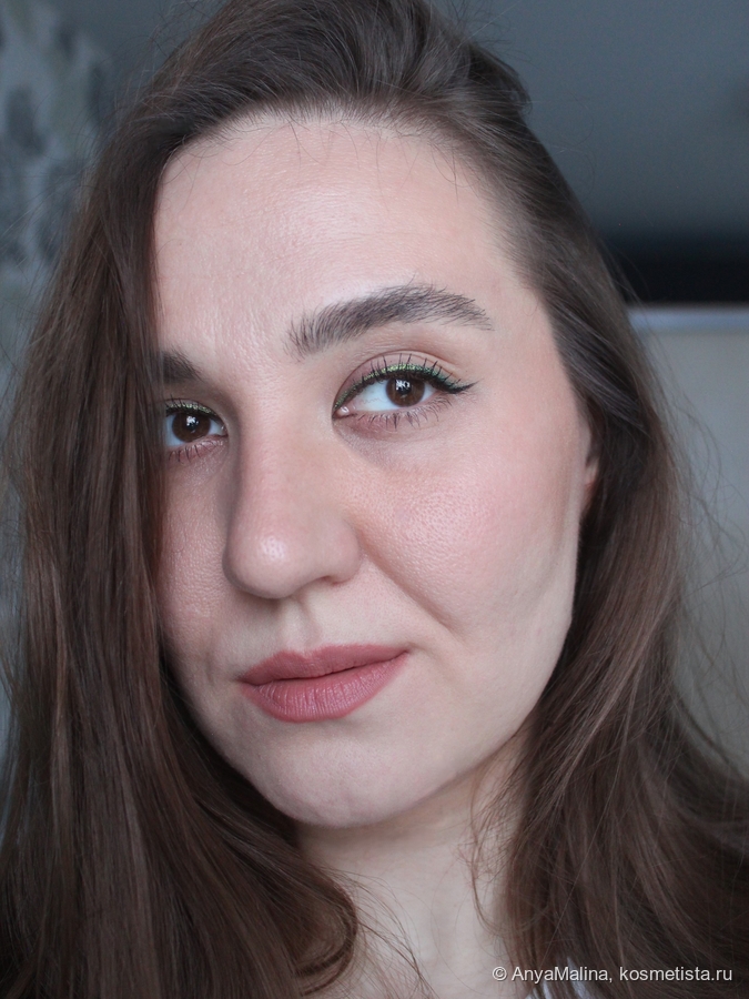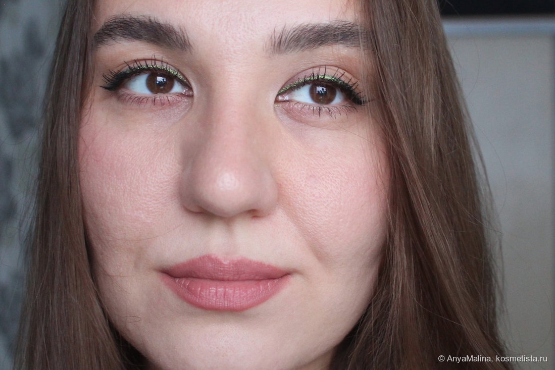 Остаются глаза и губы. И если с последними и показывать нечего: просто беру карандаш Arive Makeup Long lasting lip pencil 03 Masala (чудесный) по контуру и подтушевываю внутрь, заполняю цвет Arive Makeup Iconic Kiss 04 Rosebud тоненько; то про глаза можно на пару слов больше. И как будто у меня не было цели хвастаться косоглазием или асимметрией, но как хорошо тут видна работа туши, да и понятно сразу, на кой нам всем уперлась эта межресничка, хорошо же с ней.