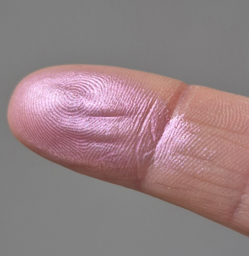 Оттенок-хамелеон, холодный розовый в рефиле с очень мелким сиянием, без явных блёсток, может меняться в сиреневый или серебристый.