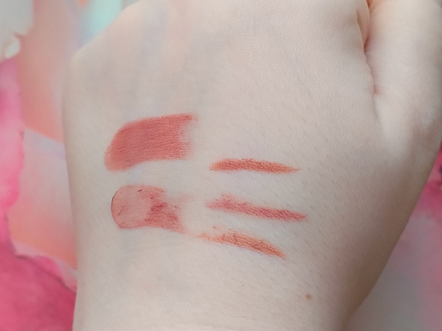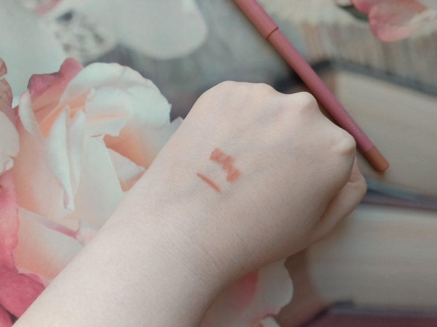Я подумала, что интересно было бы подобрать к помаде самый подходящий оттенок карандаша. На свотчах ниже слева помада, справа карандаши, снизу вверх 01, 02, 03. Как по мне 02 карандаш подошле к помаде идеально.