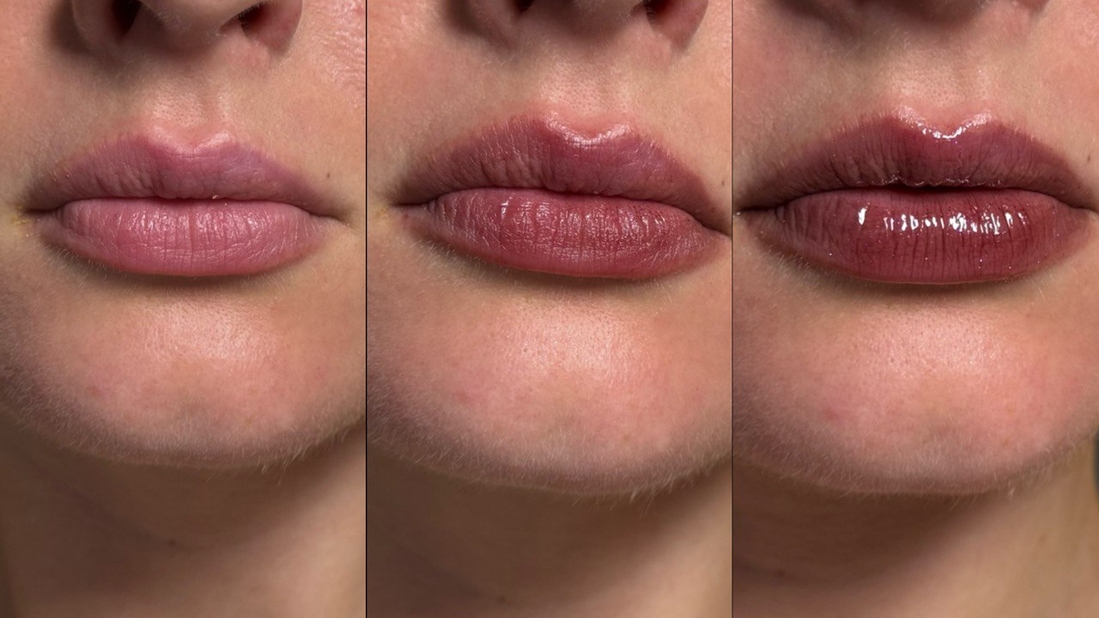 На губах наглядно: голые губы-->тинт--> плампер Catrice