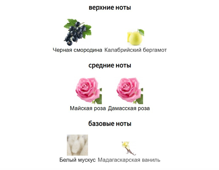 Базовые ноты: белый мускус и мадагаскарская ваниль.