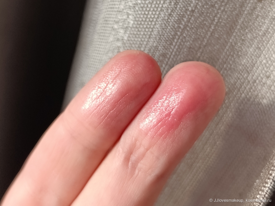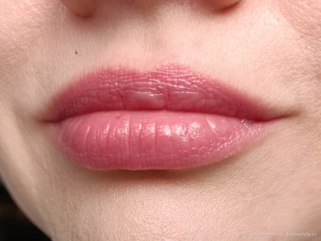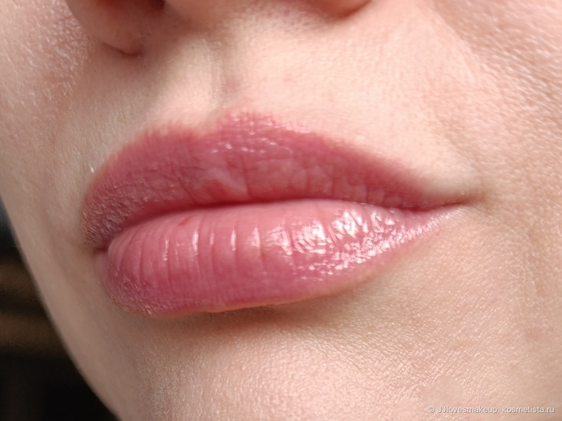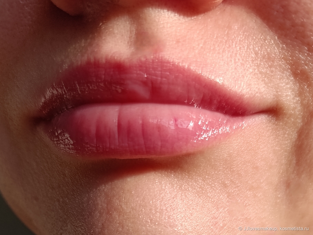 Плотность/прозрачность: практически прозрачное, с легкой розовинкой, сквозь него видно и текстуру губ, и явную неоднородность пигмента, если она есть.